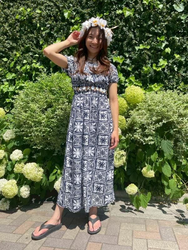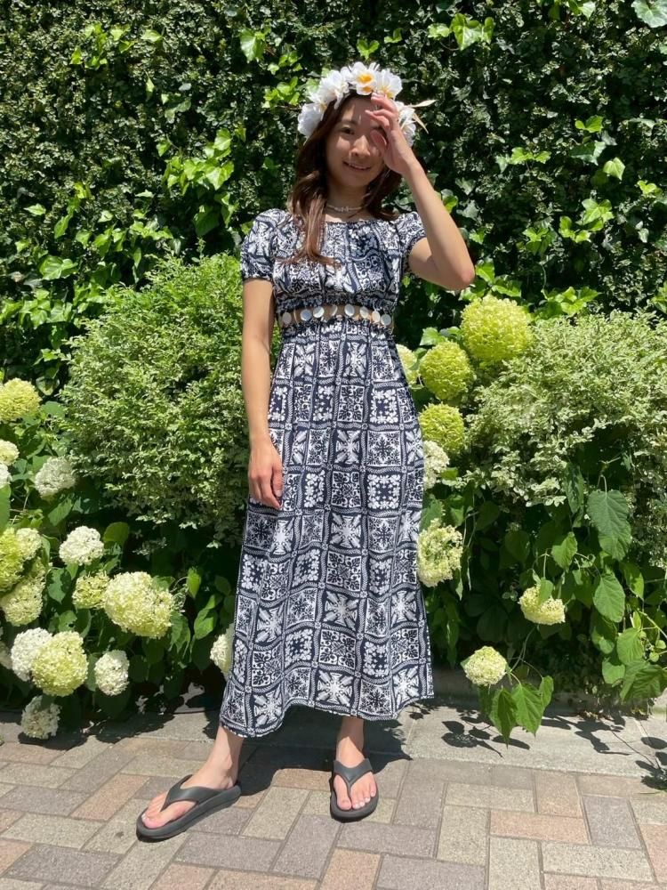 サンダルや花冠、かごバッグと合わせて南国風に。